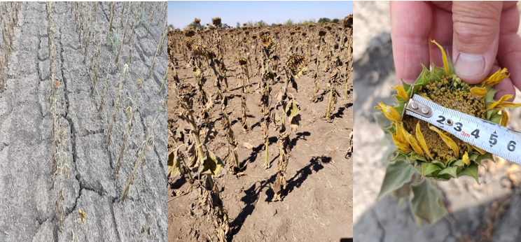 На багатьох площах Миколаївської та Херсонської областей відмічалася повна загибель посівів соняшнику та кукурудзи як від посухи, так і від масового розповсюдження шкідників та поширення хвороб.