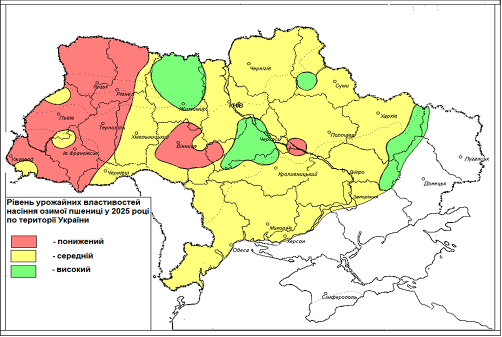 За розрахунками, виконаними в Українському Гідрометеоцентрі на основі екологічної моделі селекційно-генетичного інституту (м. Одеса), та експертною оцінкою, у 2025 році на більшості площ (близько 58%) зерно озимої пшениці сформувалося із середнім рівнем урожайних якостей.