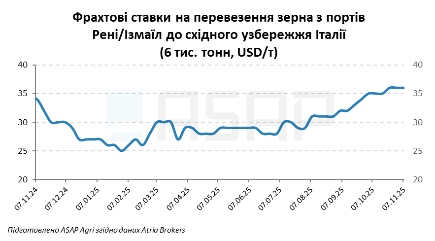 У сегменті костерів фрахт для перевезення 6 000 т кукурудзи з українських дунайських портів до Східного узбережжя Італії також стабільний 36–38 USD/т.